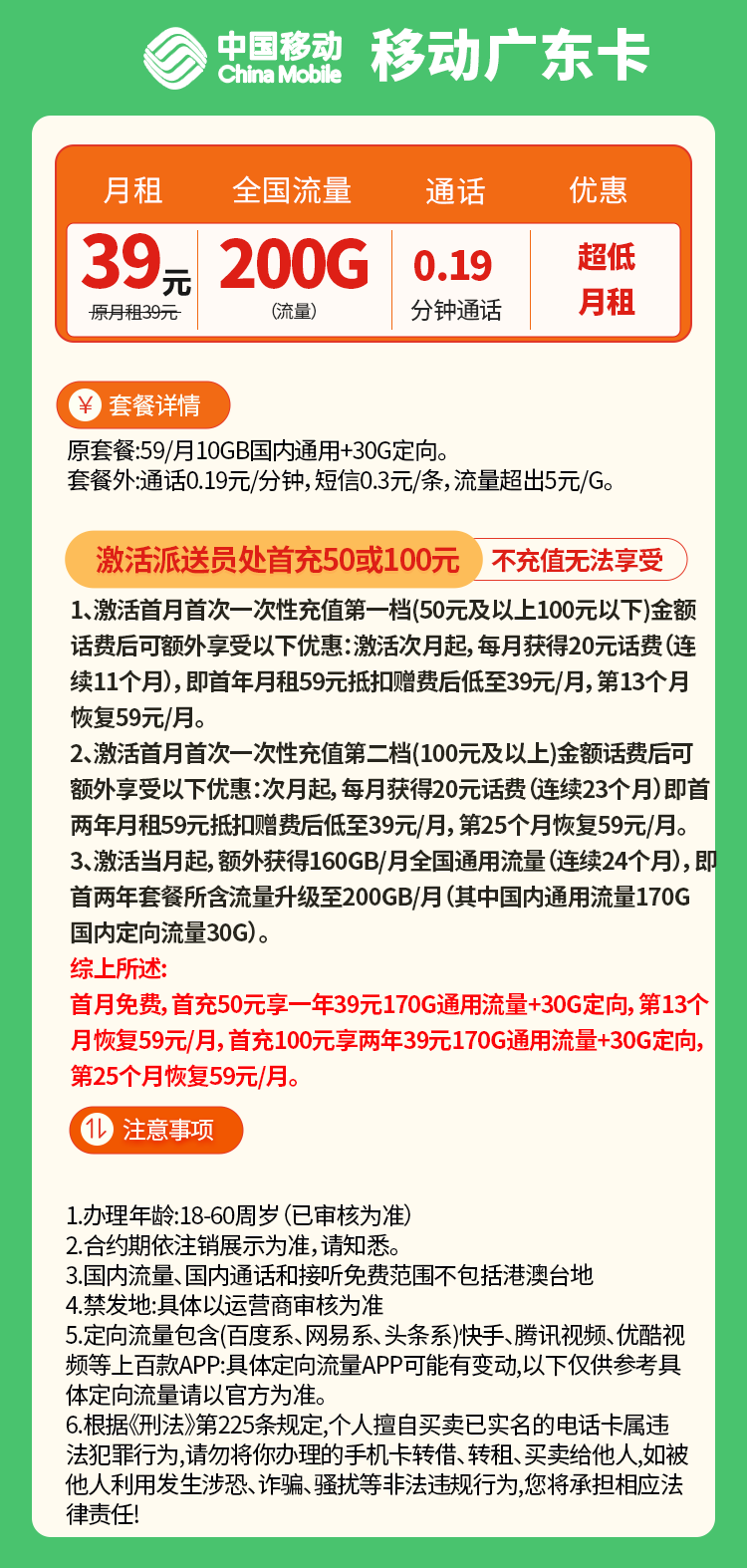 移动广东D卡·只发广东